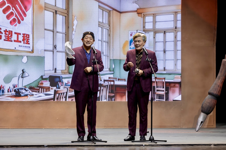 久违了的笑声!上周末的兰心大戏院“笑率”超高,《“笔耕不辍 笑果累累”梁定东艺术生涯60年演出季》五场演出场场爆满。海派滑稽界“黄金阵容”倾巢而出,一代上海人熟悉的《红茶坊》IP回归,不仅吸引“银发族”追星,也让年轻观众感叹“滑稽戏原来这么好看!”这份欢笑的背后有一位不为观众所熟知的幕后功臣——资深滑稽戏编剧梁定东。今年是梁定东从艺60周年,一甲子以来,千余部独脚戏、滑稽小品、上海说唱等作品从其手中诞生,海派情景喜剧《红茶坊》更是成为一代上海人的集体回忆。